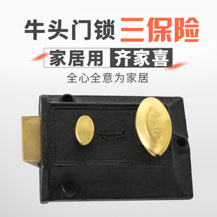 双保险牛头锁老式 暗锁木门门锁 房门锁牛头牌弹子门锁二保险锁外装