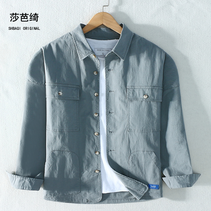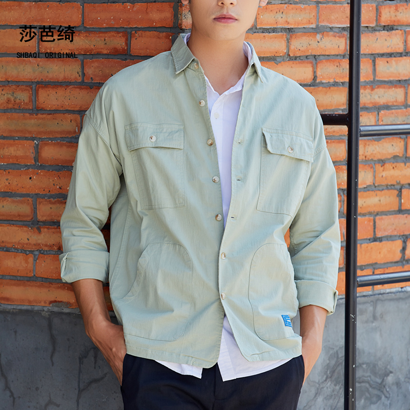 男装 莎芭绮春秋弹力纯棉工装 上衣潮牌2020新款 男长袖 衬衣外套 衬衫