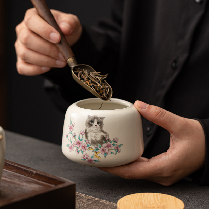 哥窑茶叶罐汝窑陶瓷普洱密封罐青瓷存储物罐迷你小号茶叶包装 盒