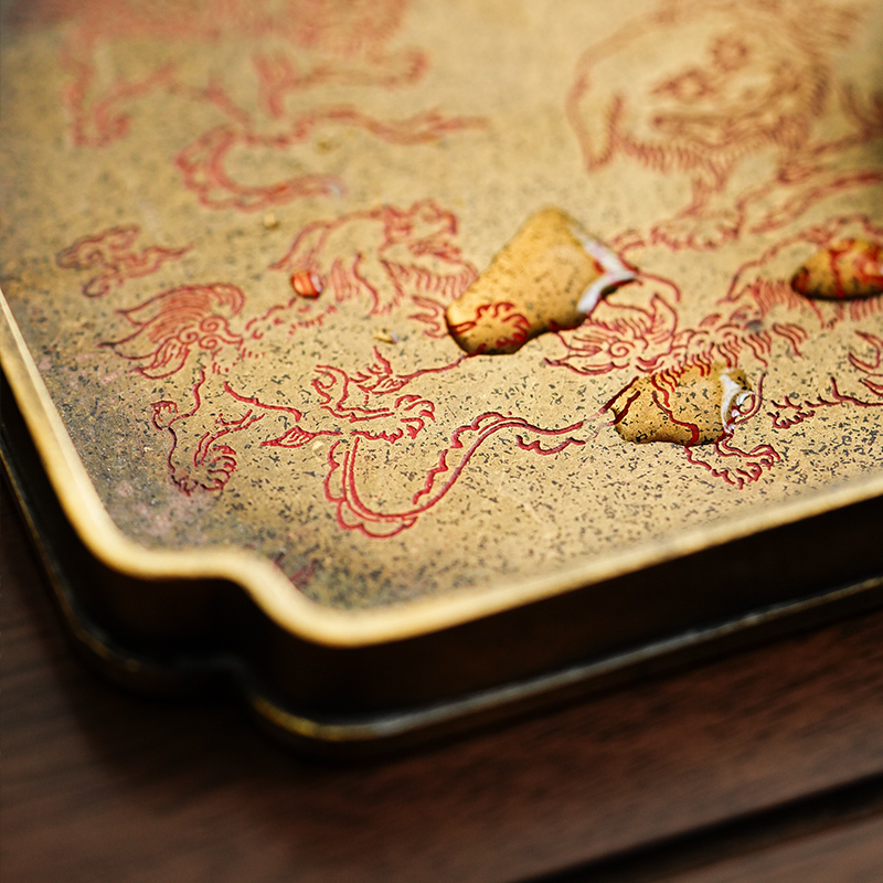 云术 仿古做旧漆绘壶承纯手工黄铜壶垫家用小干泡台茶盘 宋式