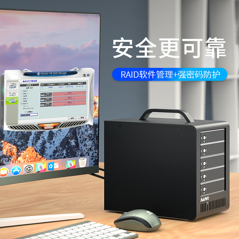 麦沃硬盘盒五盘位全铝手提硬盘柜RAID外置阵列盒服务器机箱K5FU3S