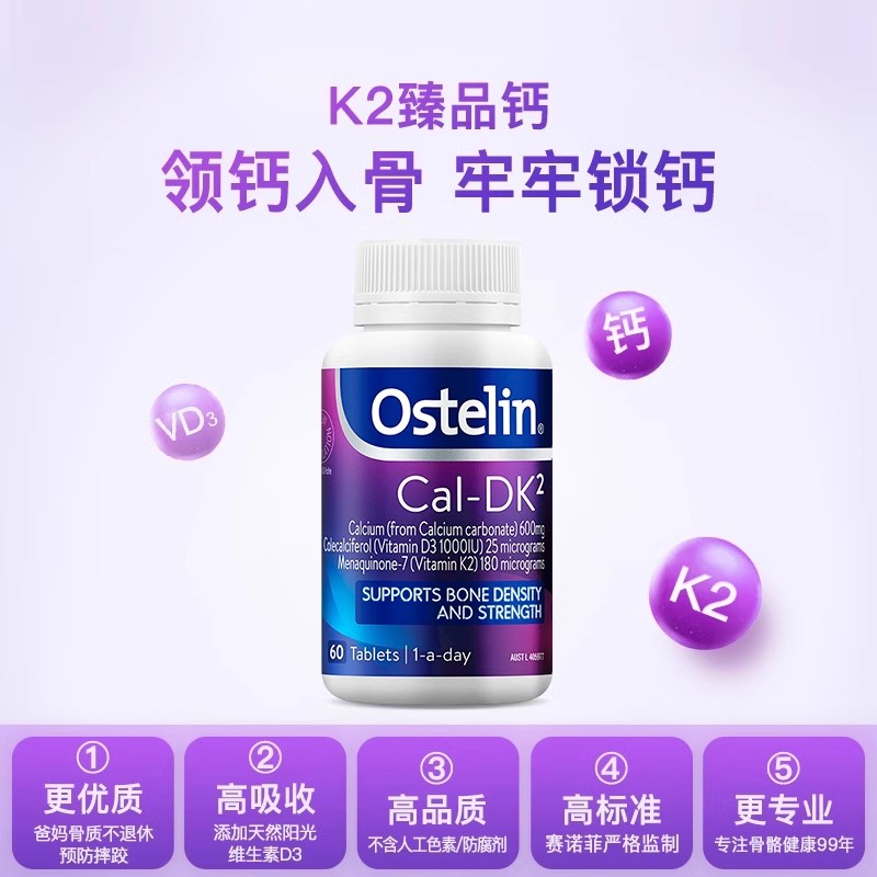 Ostelin奥斯特林维生素k2碳酸钙片孕妇中老年补钙60粒 自营