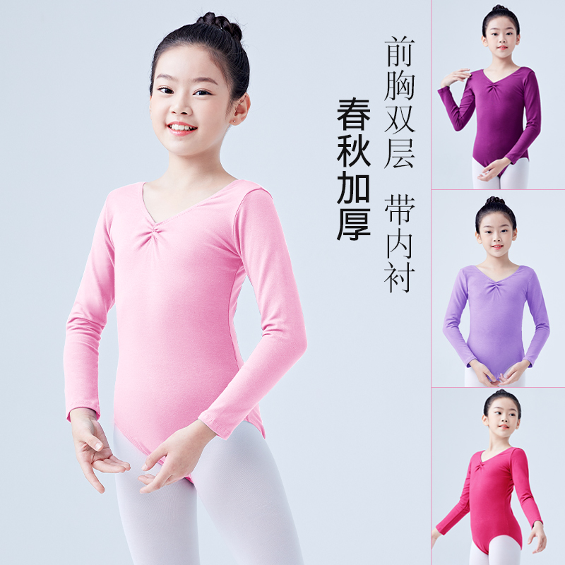 咔萌琪儿童舞蹈跳舞练功服女童中国舞粉色芭蕾演出服秋冬长袖 套装