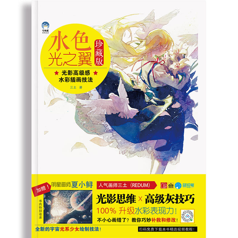 水彩插画绘本临摹素材水彩插画画集 三土 水彩插画教程书水彩书插画森系少女手绘制技法书籍 光影高级感水彩插画技法 水色光之翼