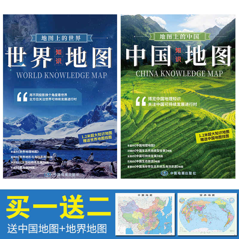 套装 撕不烂 中国地图 2册 知识版 1.2 折叠 防水 地图上 袋装 世界 0.8米 学生地理学习 世界地图 当当网 中国