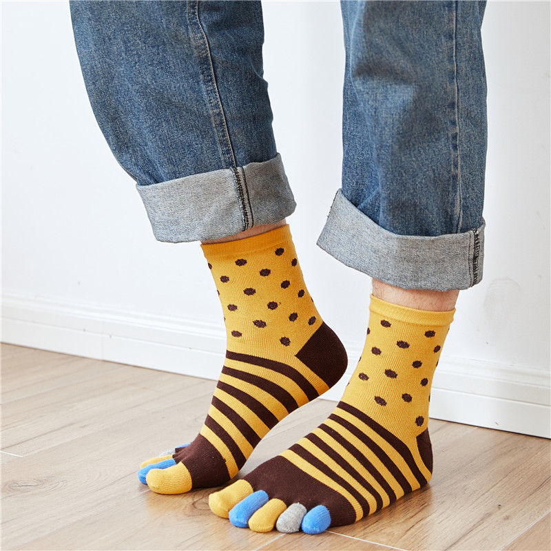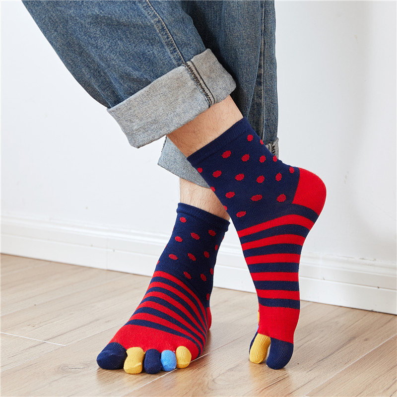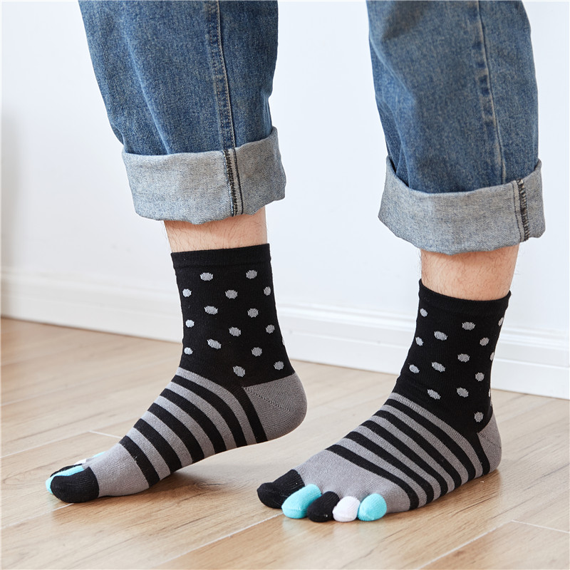 蓝姿欣新款 棉袜 五指袜男精梳棉中筒脚趾分指袜彩指满天星袜子男士