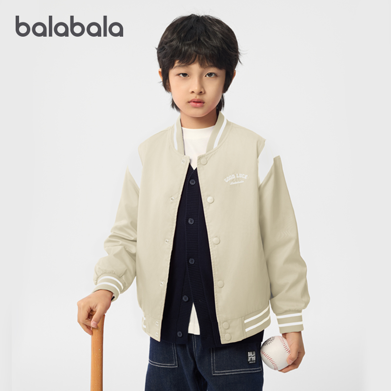 潮 童装 巴拉巴拉男童外套大童红色棒球服儿童宝宝上衣2025秋装 新款