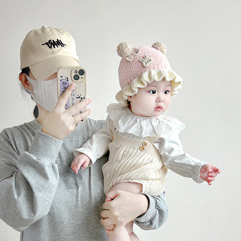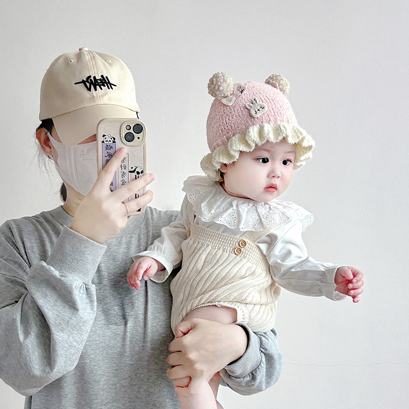 婴儿帽子秋冬季 女宝宝可爱针织毛线帽小月龄新生保暖防风护耳帽潮