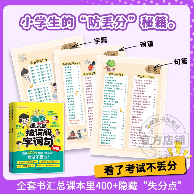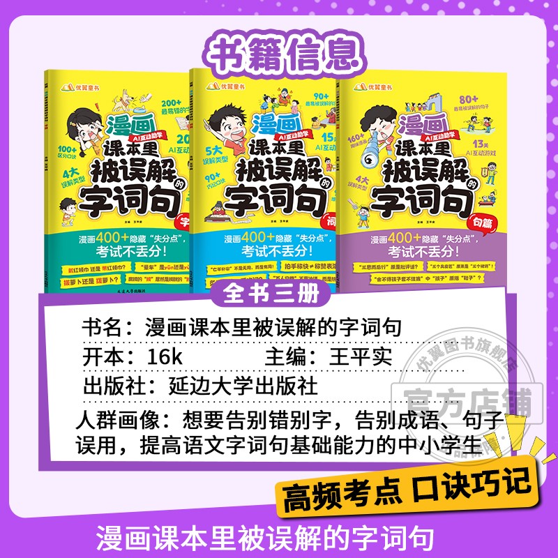全3册 病句大全 优翼漫画课本里被误解 错别字修改 专项训练小学生三四五六年级偏旁部首纠错病句改错考试辅导书漫画书 字词句