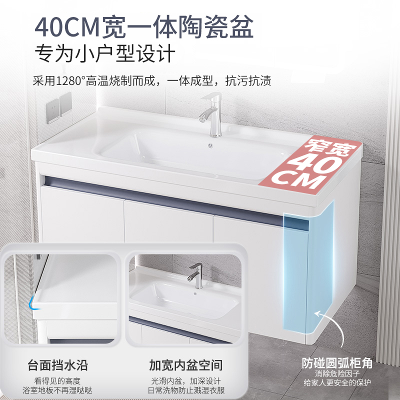 小户型窄宽40蜂窝铝浴室柜组合陶瓷一体洗手洗脸盆柜卫生间洗漱台