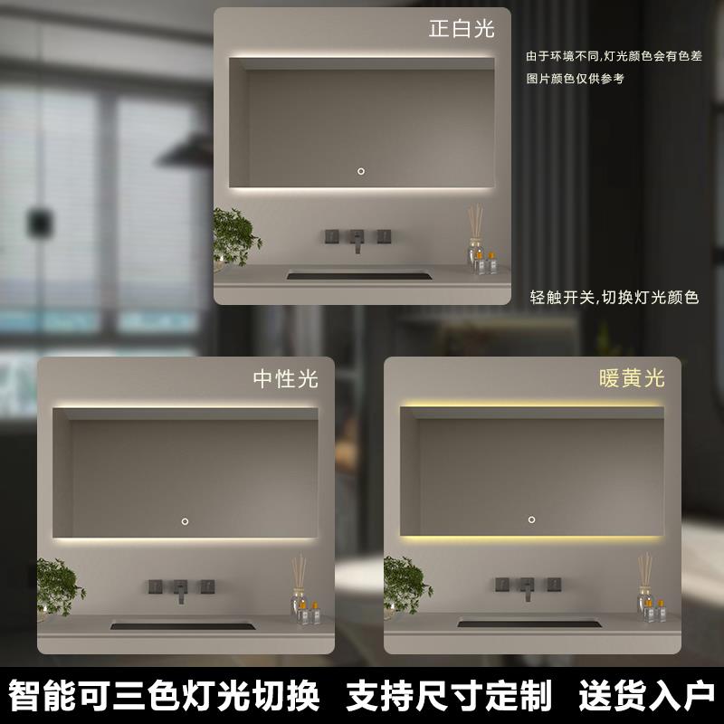 智能浴室镜触摸屏led带灯挂墙式 家用洗手卫生间镜子防雾厕所定制
