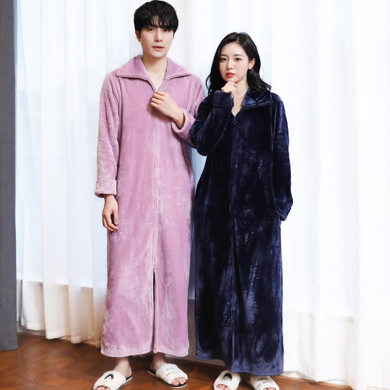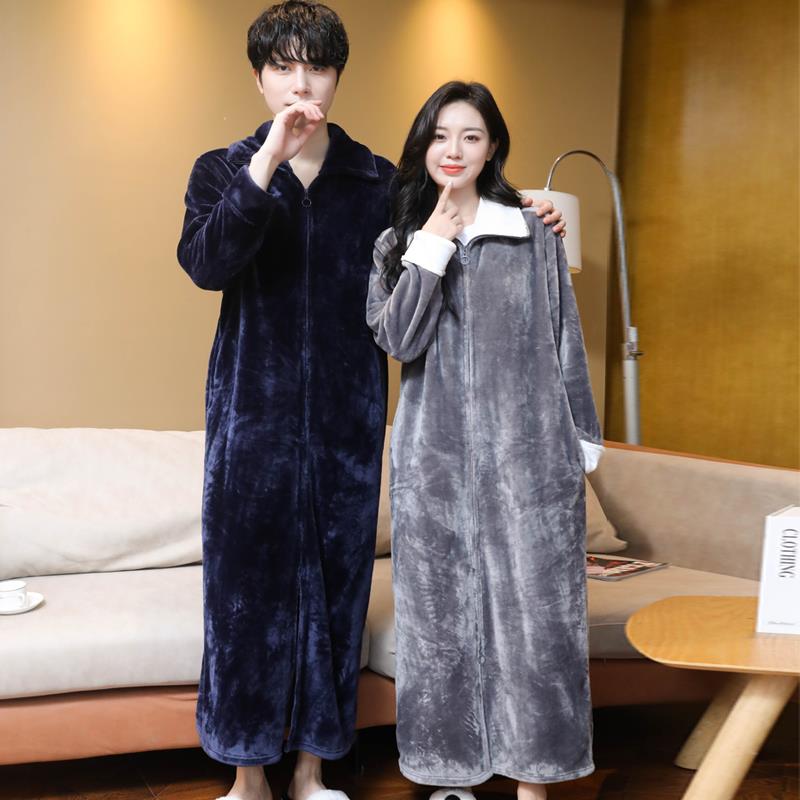 秋冬连体睡衣女冬季 法兰绒懒人拉链睡裙男宽松可外穿情侣睡1009c
