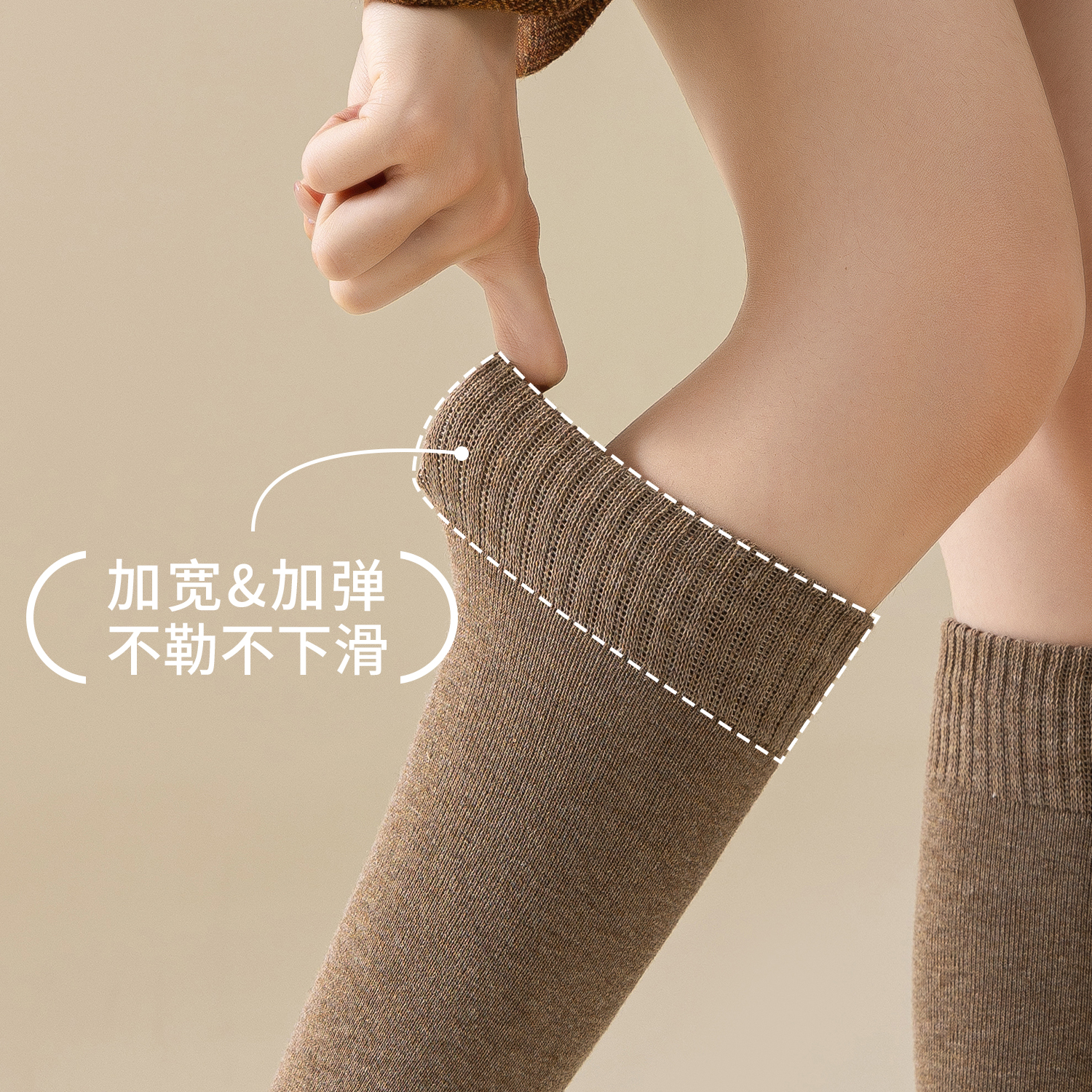 小腿袜子女纯棉春秋季 高筒咖色及膝袜半筒 压力袜套长筒全棉秋冬款