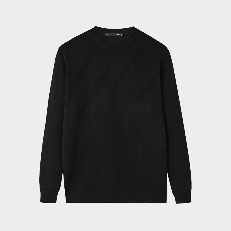 男款 保暖内搭针织衫 打底衫 GV真维斯黑色毛衣男秋冬加绒圆领男士