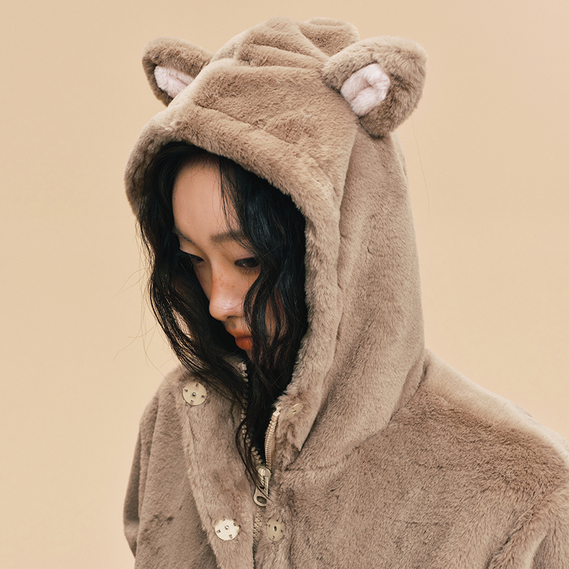 511310 简约翻领松紧摆宽松软皮衣夹克女装 三福外套女2025新款 冬季