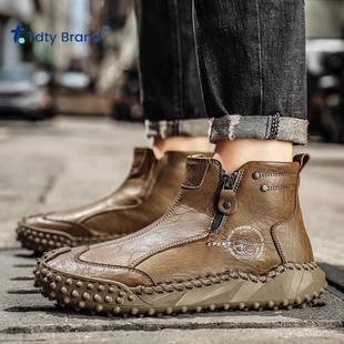 复古高帮棕色厚底机车马丁靴翻毛皮休闲沙漠靴 秋季 马登工装 靴男款
