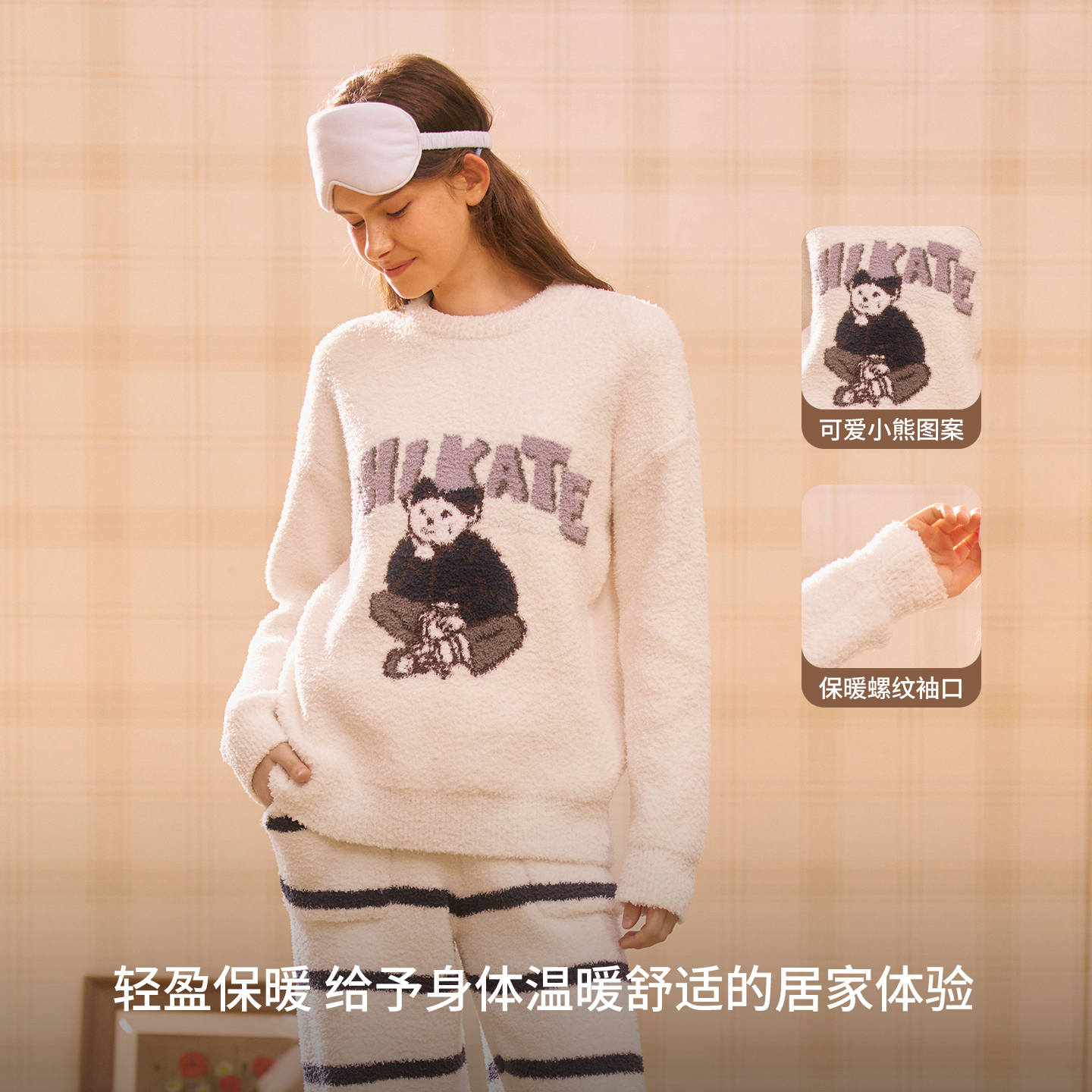 TeenieWeenie小熊睡衣女2025新款 女 秋冬半边绒加厚圆领家居服套装