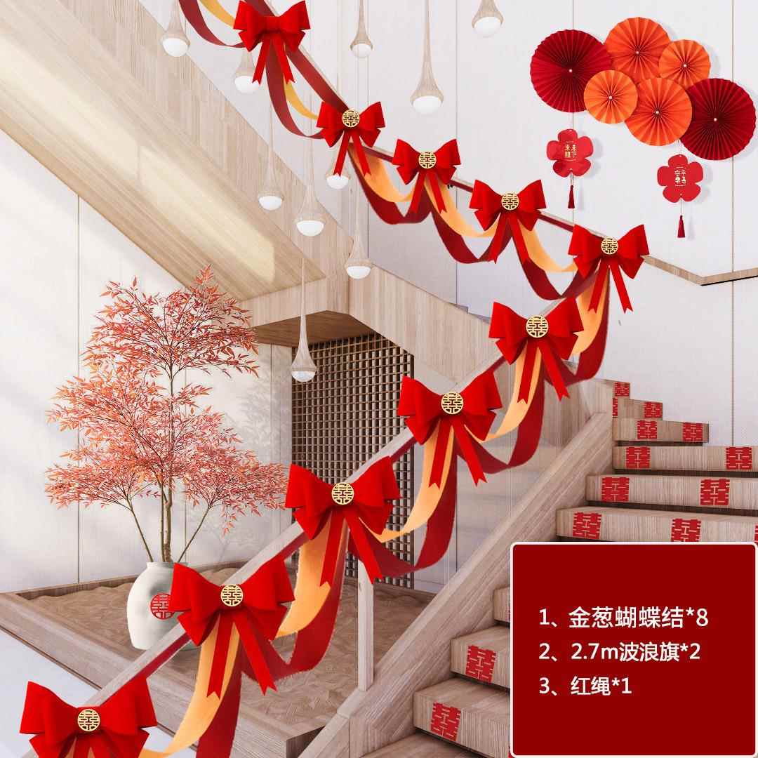 婚礼女方卧室喜字拉花婚庆 饰套装 结婚家庭布置装 饰结婚楼梯扶手装