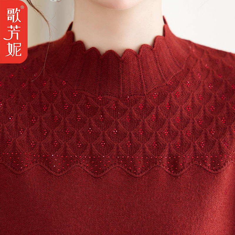 半高领羊毛衫 中年女装 上衣 秋冬打底毛衣时尚 4050岁女士洋气妈妈装