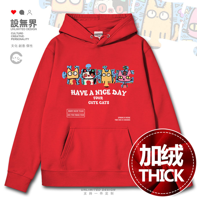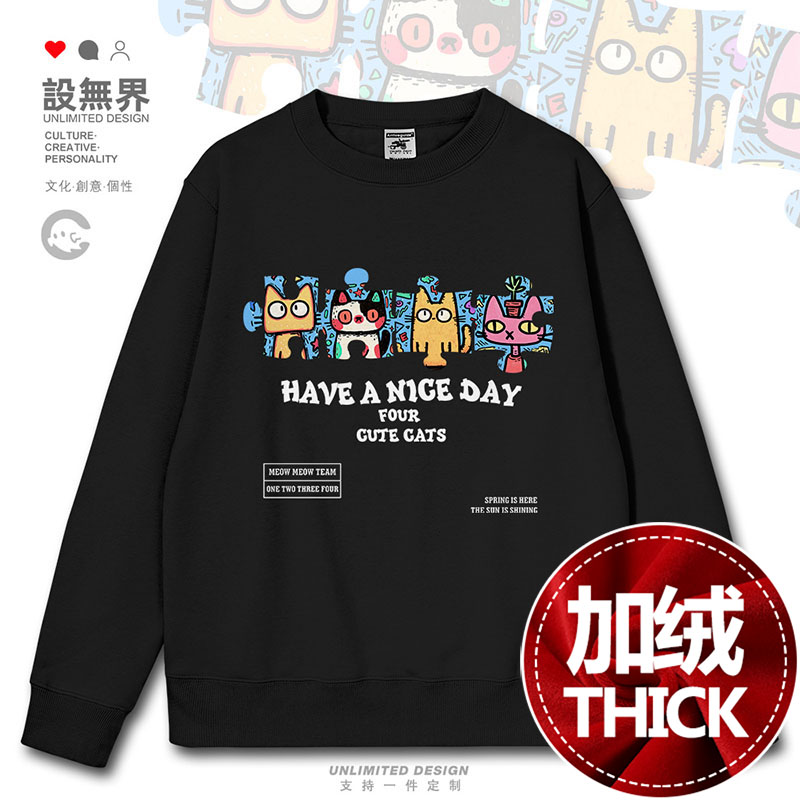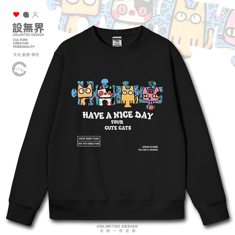 卡通童趣猫咪拼图碎片涂鸦ins潮牌连帽卫衣男女帽衫 无界 潮0017设