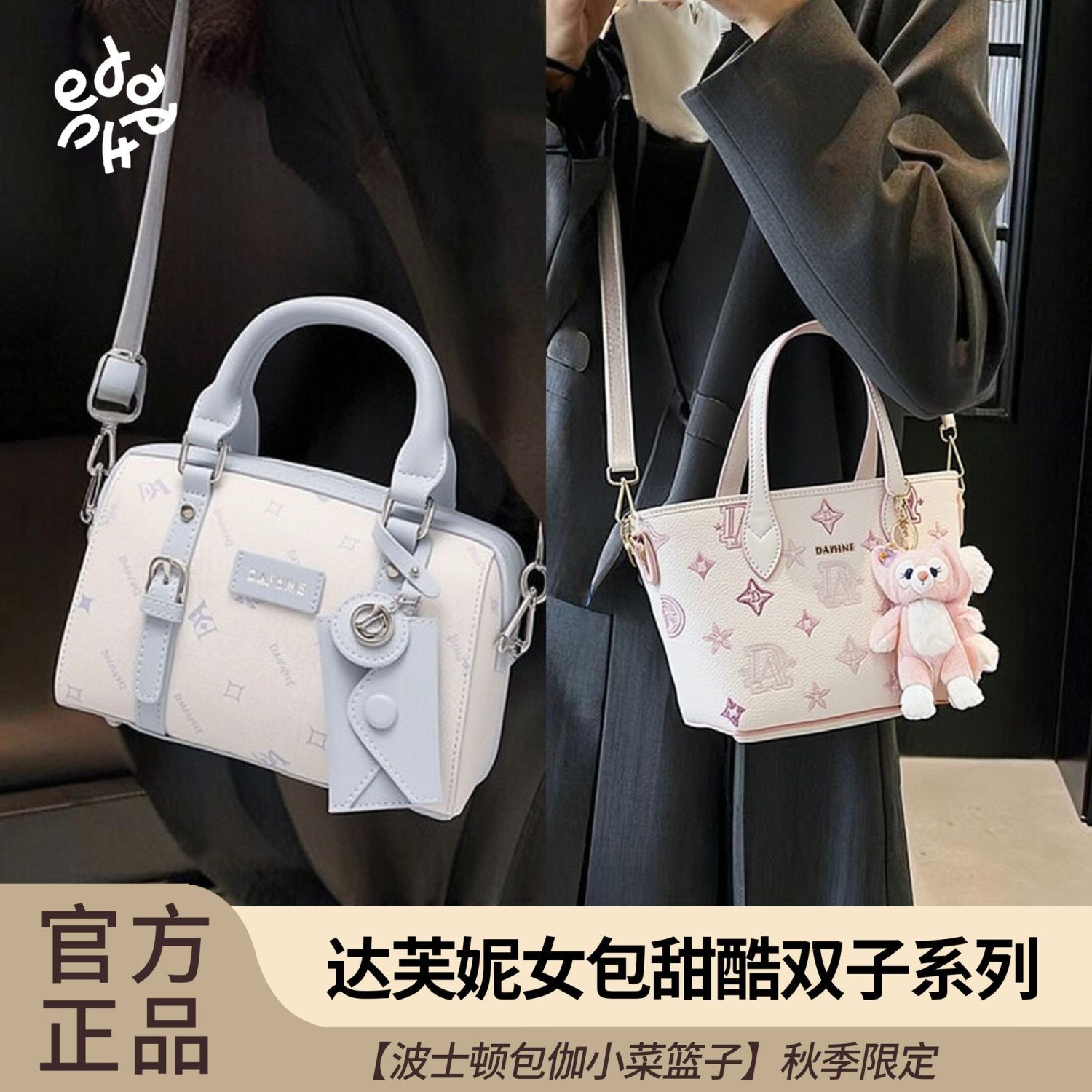 三福挎包冬季 学院老钱风韩系纯色波士顿包萌趣挂件女包505117