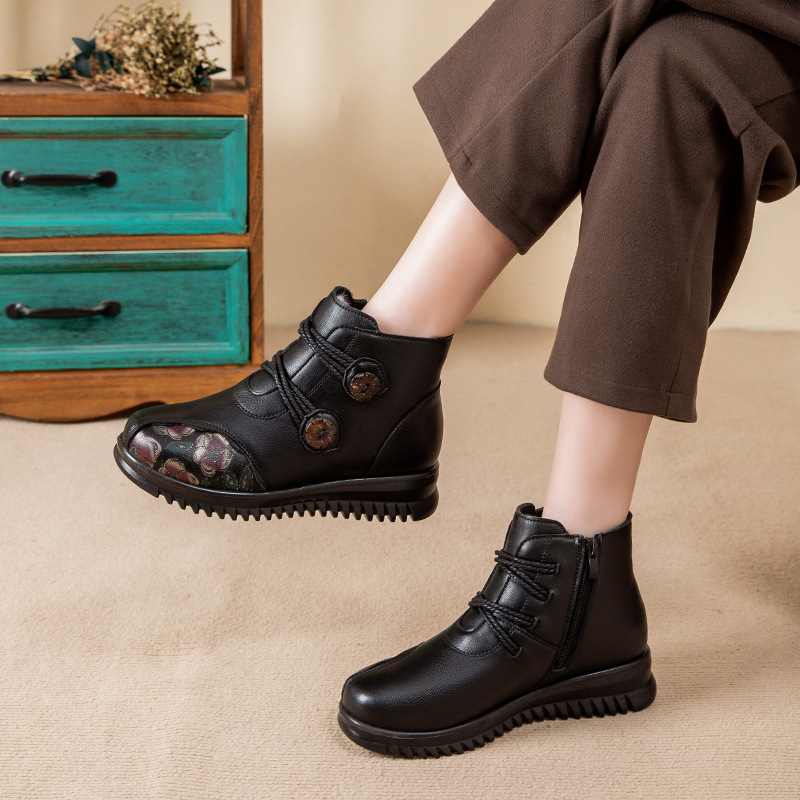 加绒加厚防滑厚底棉靴棉鞋 防水雪地靴女2025新款 妈妈鞋 保暖鞋 冬季