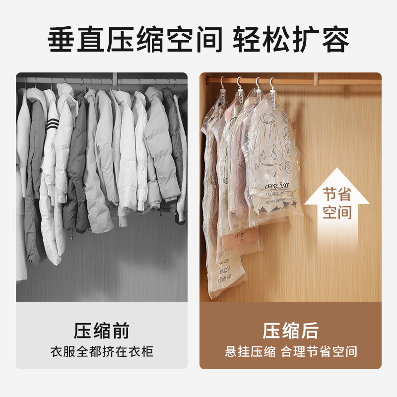 羽绒服收纳袋抽真空压缩袋挂衣服专用衣柜挂式 大衣棉服被子神器 装