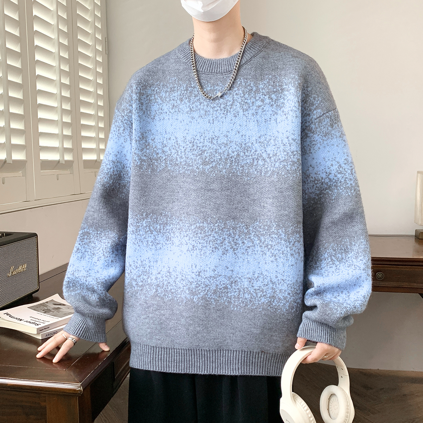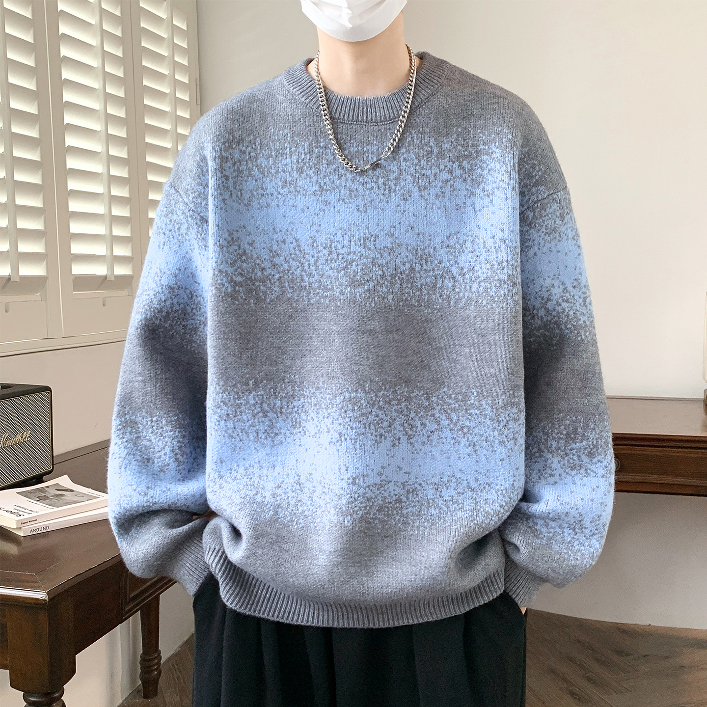 男款 青少年潮牌宽松加厚保暖针织衫 线衣 秋冬季 松弛感渐变毛衣男款