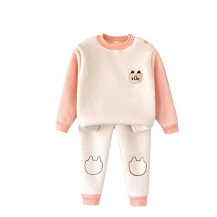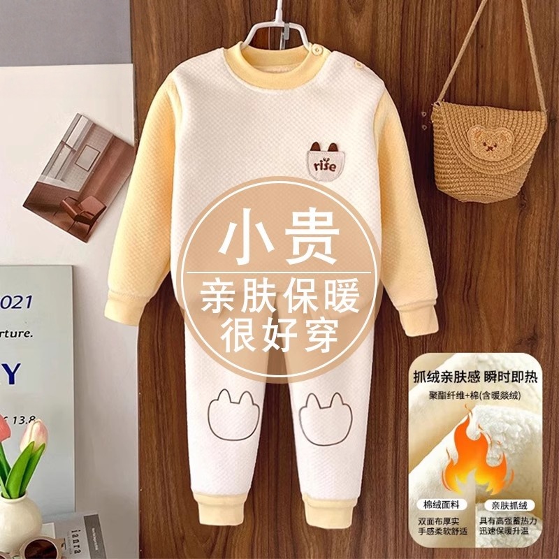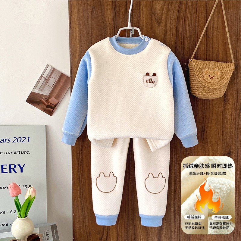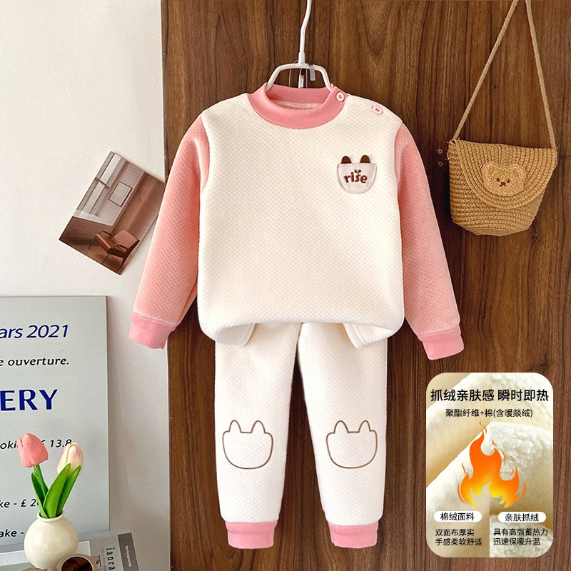 宝宝两件套 女童加绒加厚童装 儿童秋冬款 双面绒男童保暖家居服套装