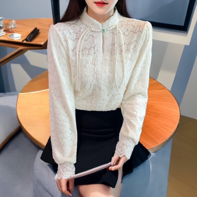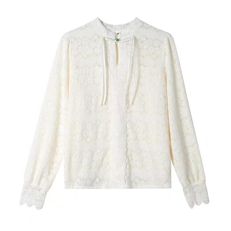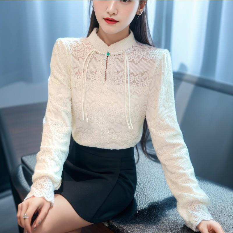 感新中式 国风气质小衫 上1007k 女新款 秋冬打底内搭保暖加绒蕾丝衫