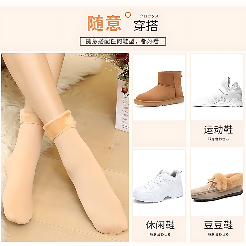 雪地袜女加绒加厚地板袜袜子秋冬季 防寒保暖自发热男女中筒袜