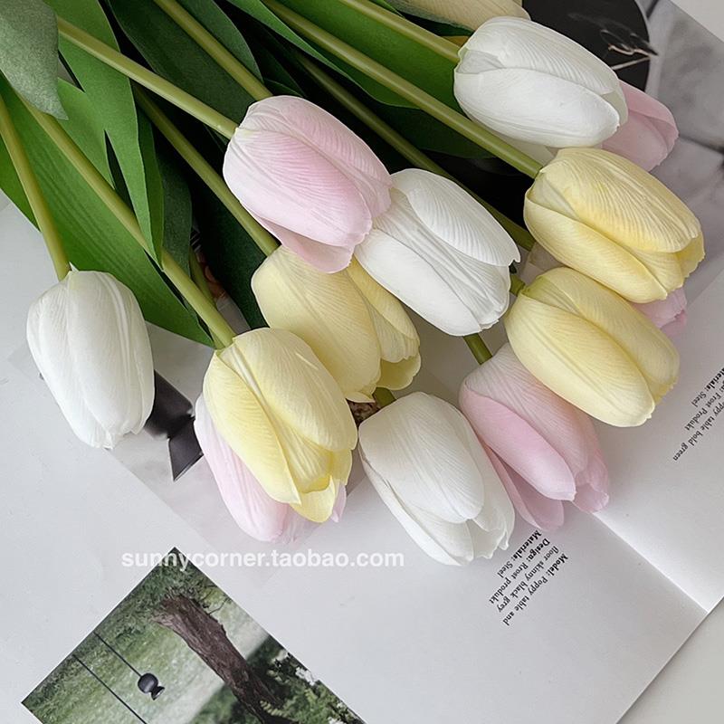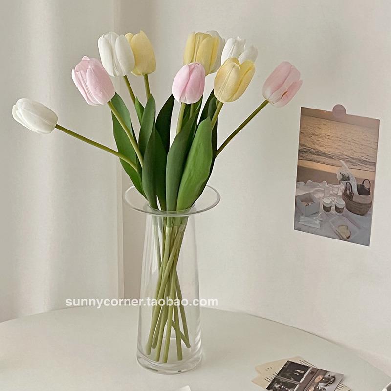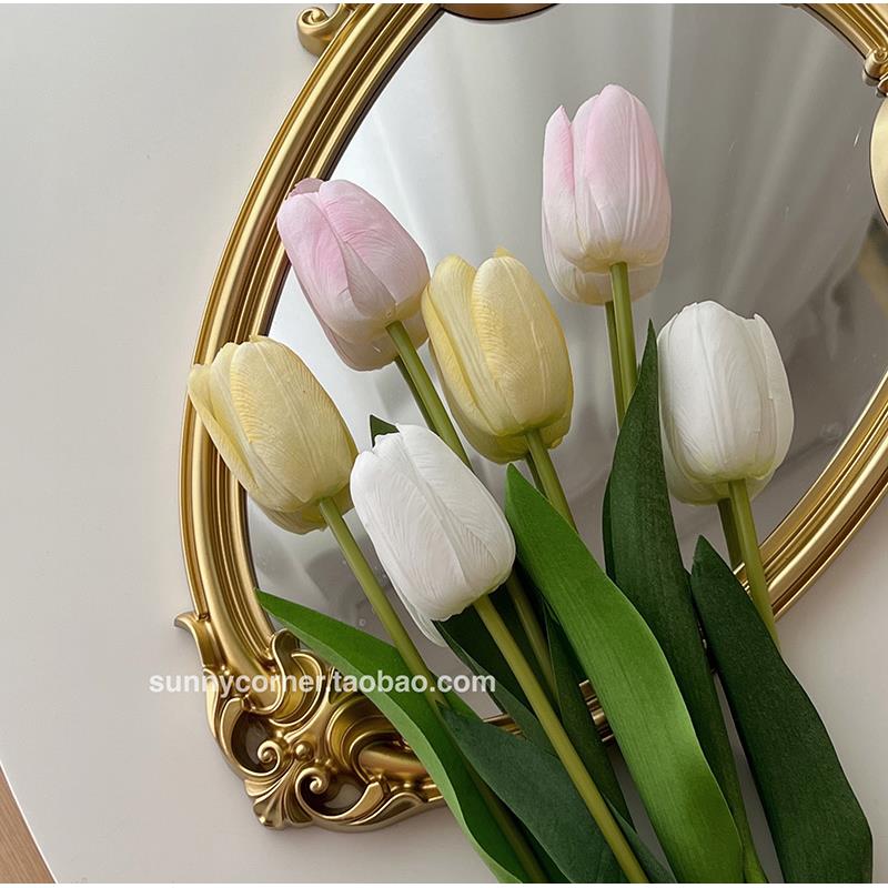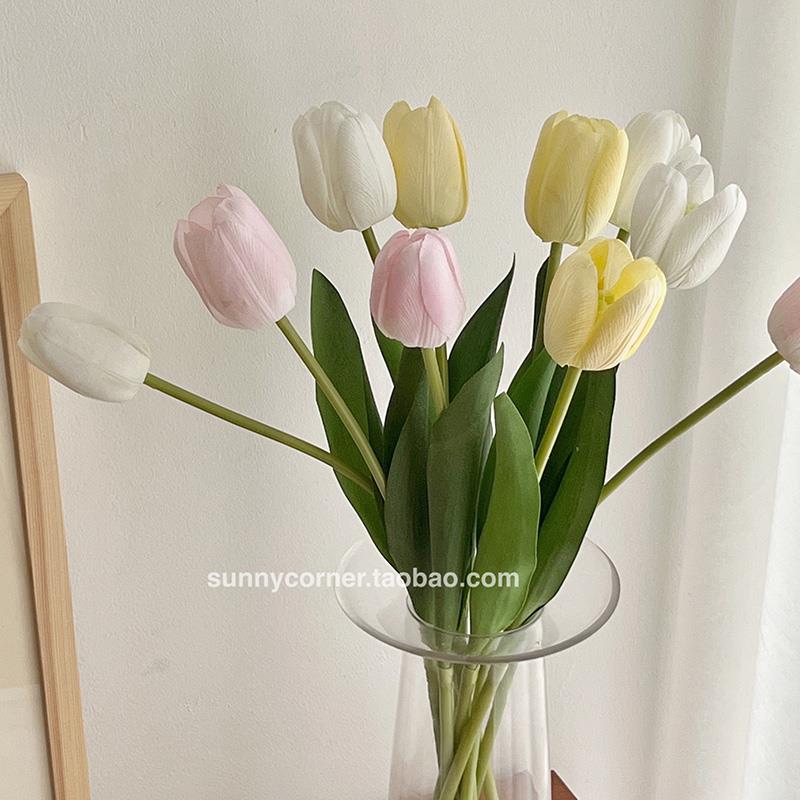 奶油郁金香人造花假花餐桌客厅花瓶饰品装 照片花束 饰饰品风格