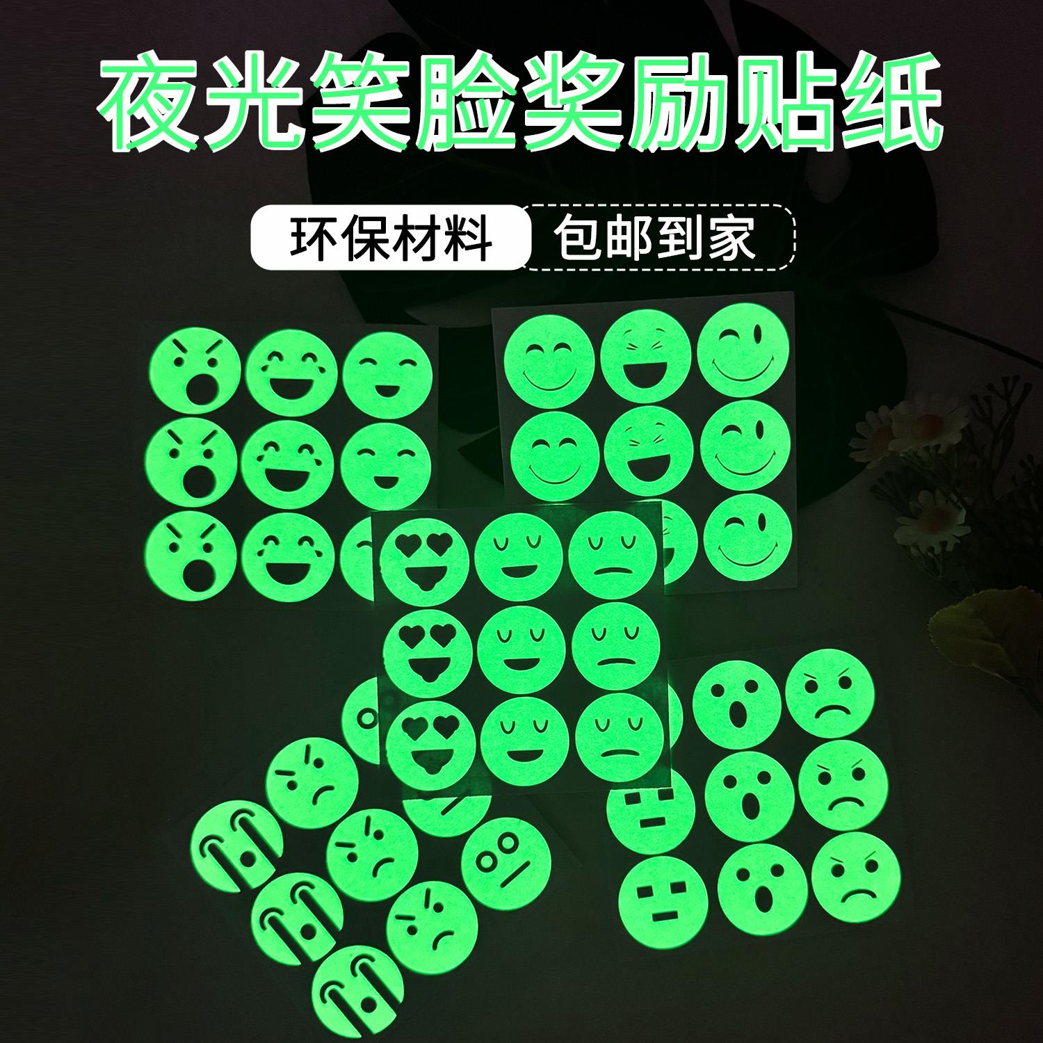 夜光开关贴发光卡通笑脸表情包提示门铃荧光墙壁装 饰贴画情绪贴纸
