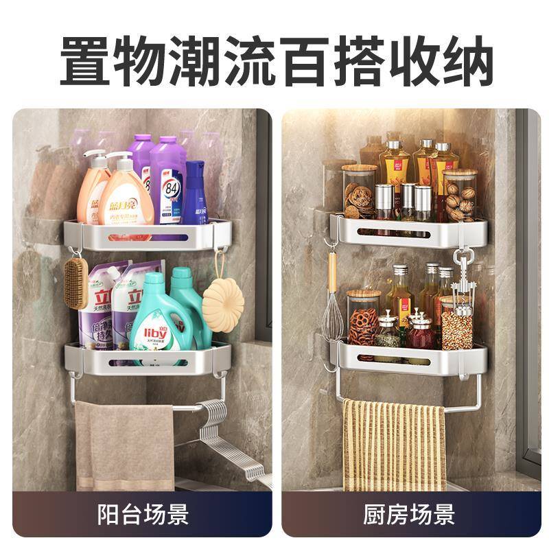 卫生间置物架三角浴室免打孔厕所转角挂架壁挂式 洗手洗澡间收纳架