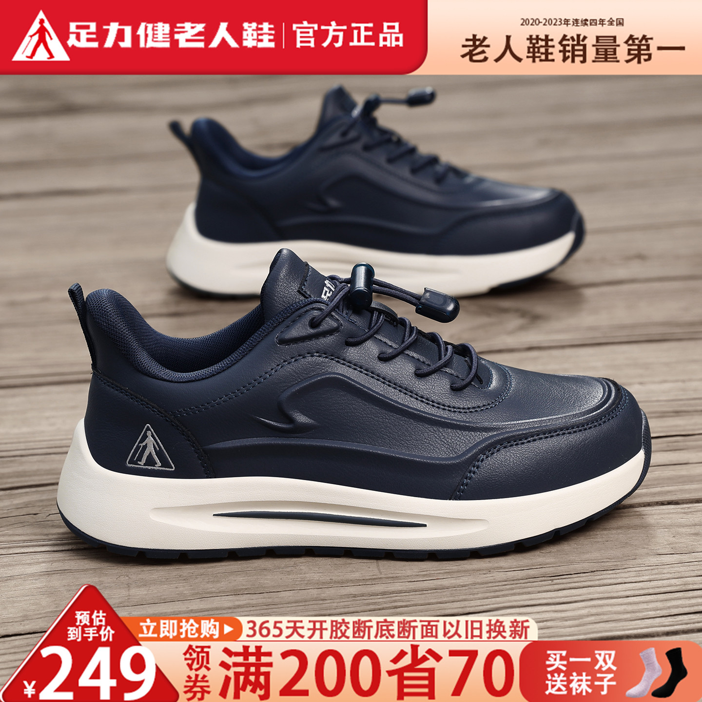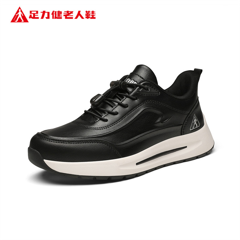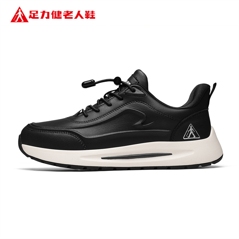 中年爸爸休闲鞋 软底舒适防水防滑健步鞋 男秋冬季 足力健黑色老人鞋