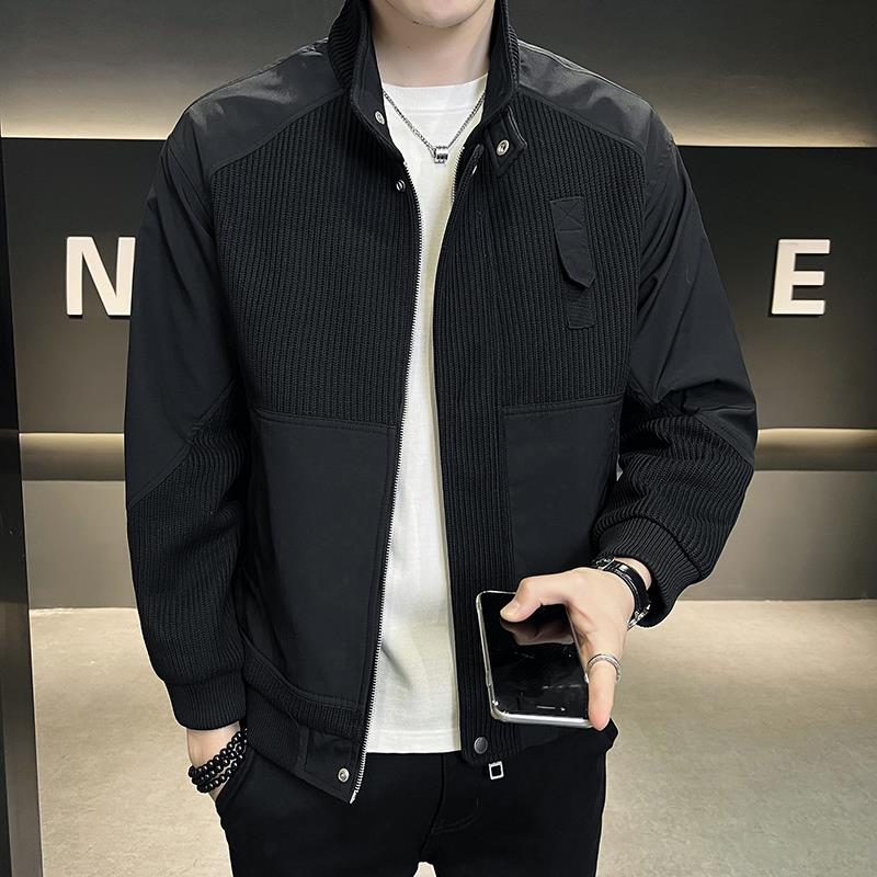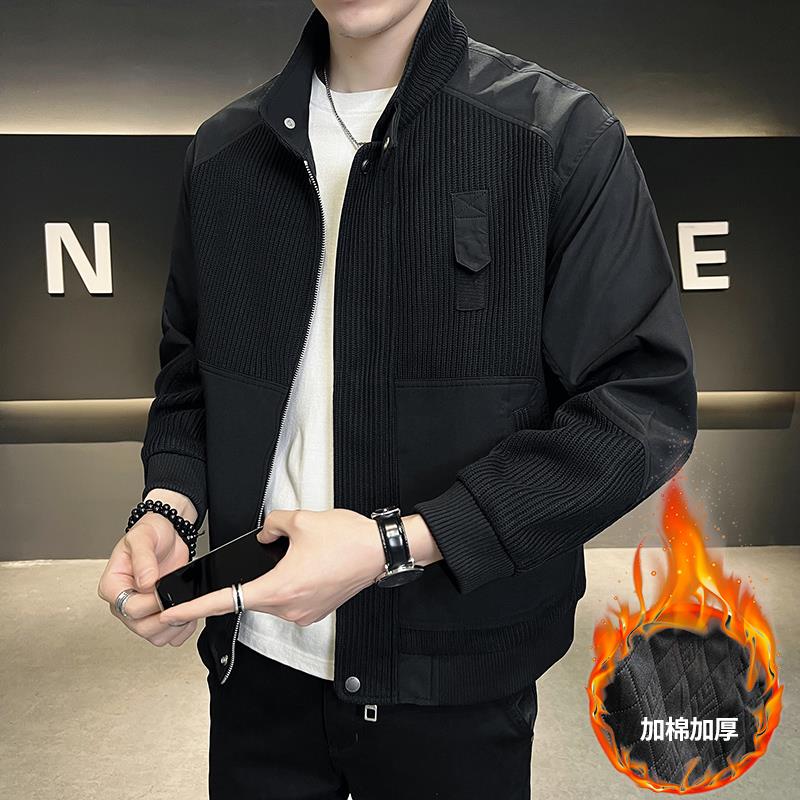 秋冬新款 拼接加棉夹克2025潮流立领休闲棉衣男针织1007z 潮牌男士