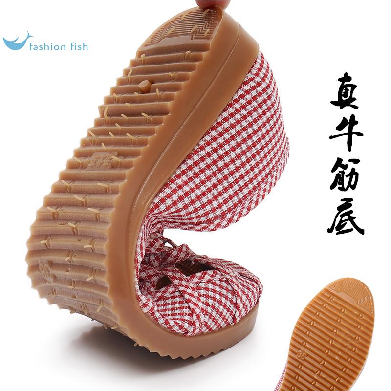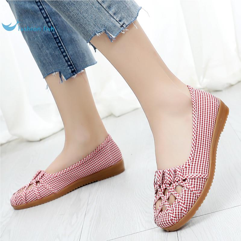 休闲格子牛筋软底鞋 春夏季 凉爽镂空妈妈浅口女鞋 老北京布鞋 子 新款