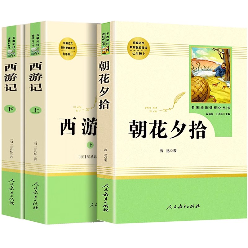社老师推荐 七年级上册必读课外书人民教育出版 阅读白洋淀纪事湘行散记镜花缘初中生7年级书籍 西游记无删减版 朝花夕拾鲁迅原著正版
