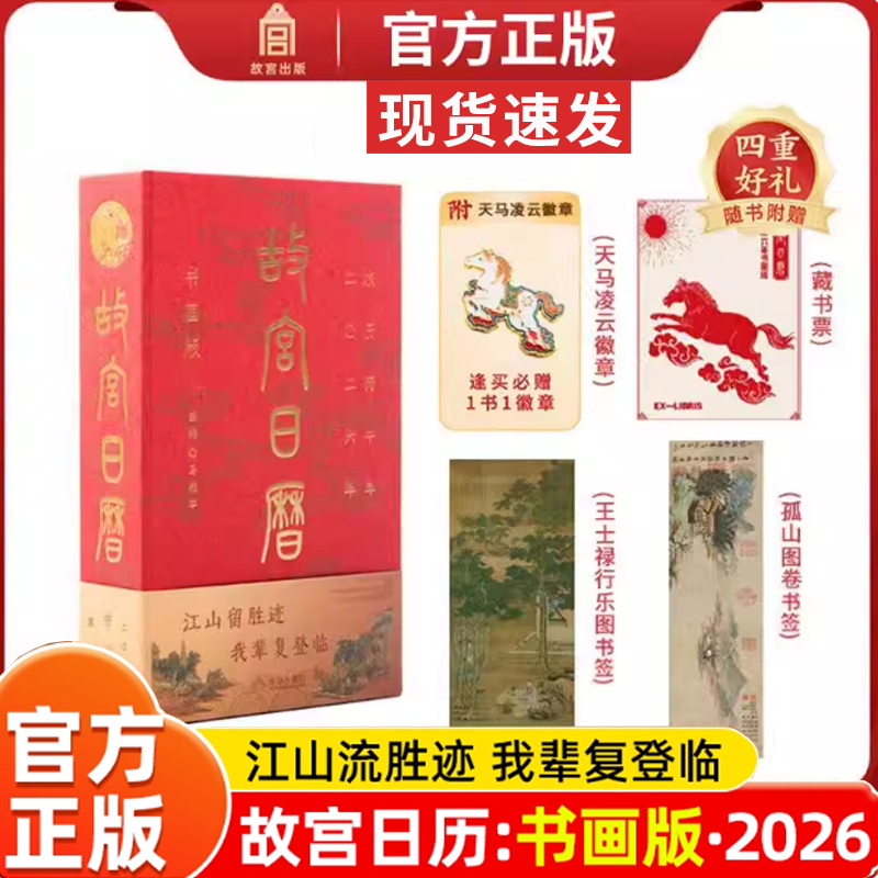 正版 故宫出版 保证 逢买必赠天马凌云徽章昭陵六骏图藏书票孤山图书签王士禄行乐图书签 社2026日历书籍 2026年故宫日历书画版