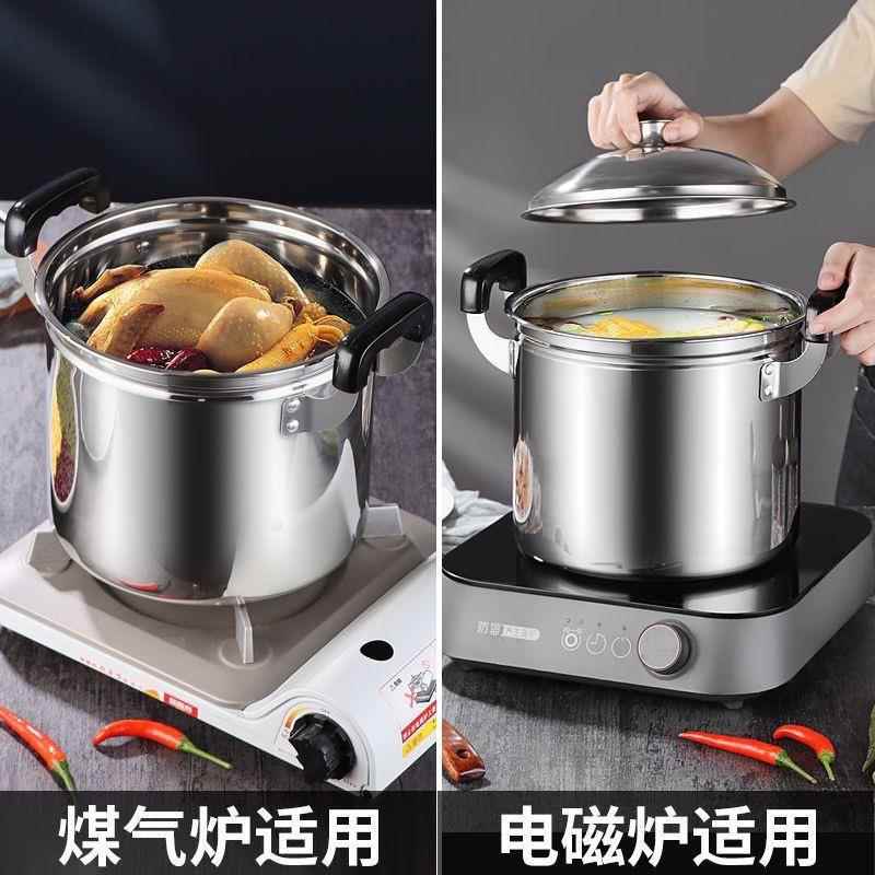不锈钢汤锅加厚加深煲汤锅家用商用大容量通用燃气电磁炉高汤锅
