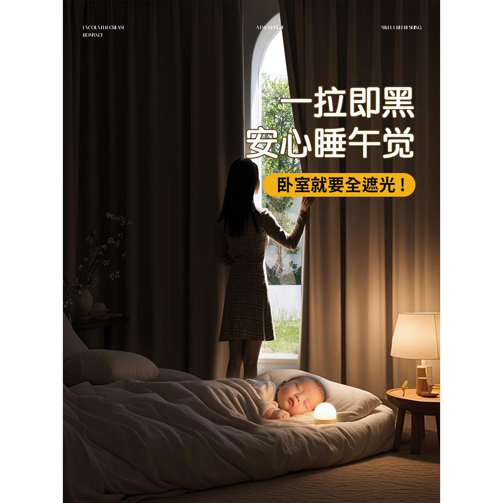 农村自建房窗帘遮光2025新款 卧室全遮光客厅雪尼尔帘遮阳免打孔安