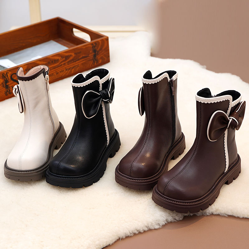 女童棉靴真皮儿童马丁靴小女孩公主靴2025秋冬新款 加绒保暖童靴子