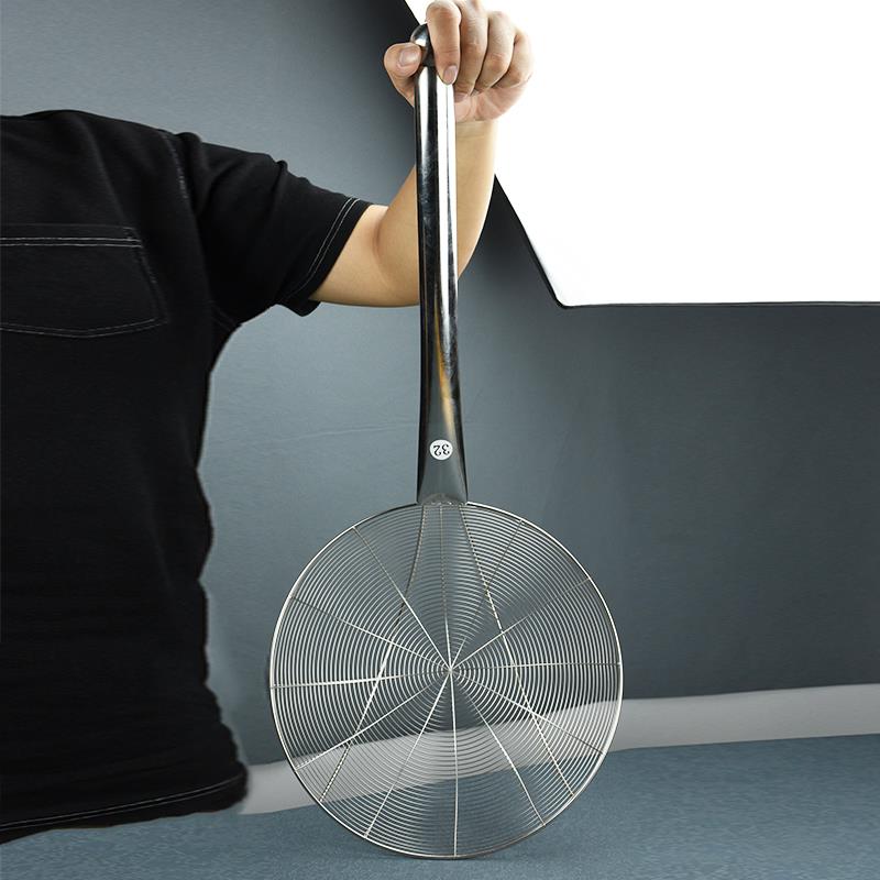 钢柄大号笊篱不锈钢加粗过滤网捞勺商用厨房面条油炸长柄家用漏勺