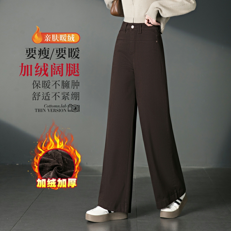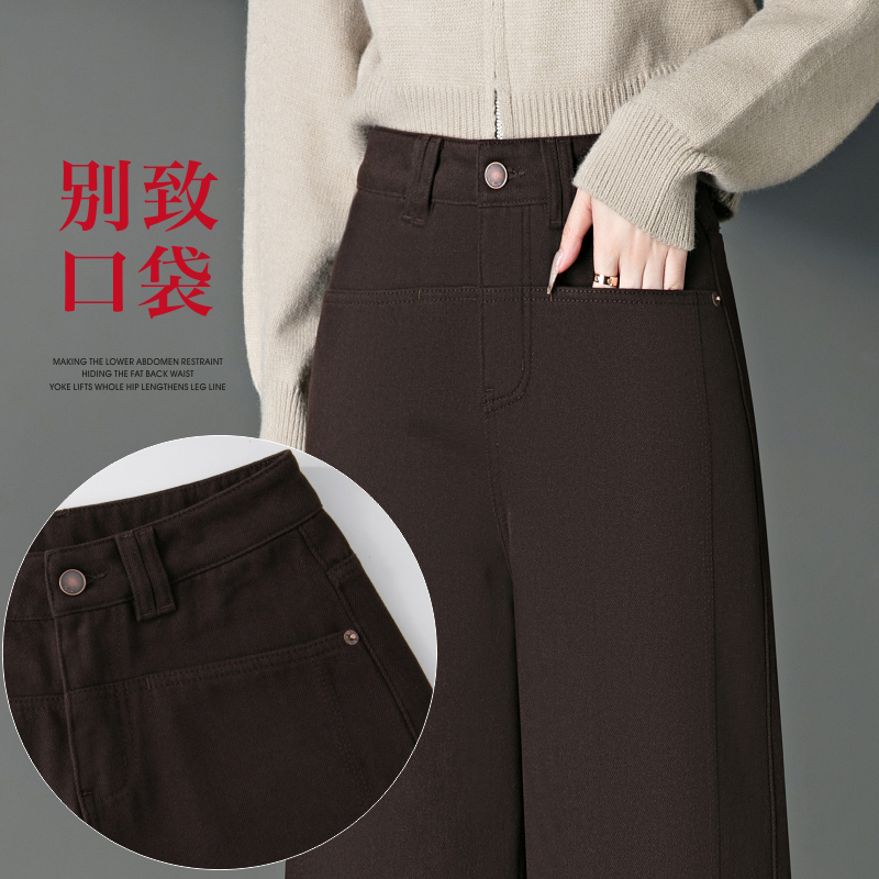 弹力高腰中老年裤 女士妈妈裤 加绒 女直筒春秋2025新款 烟灰色牛仔裤