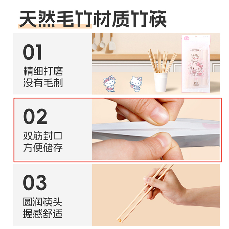 宜洁一次性筷子凯蒂猫食品级独立包装 竹筷方便筷批发外卖打包卫生