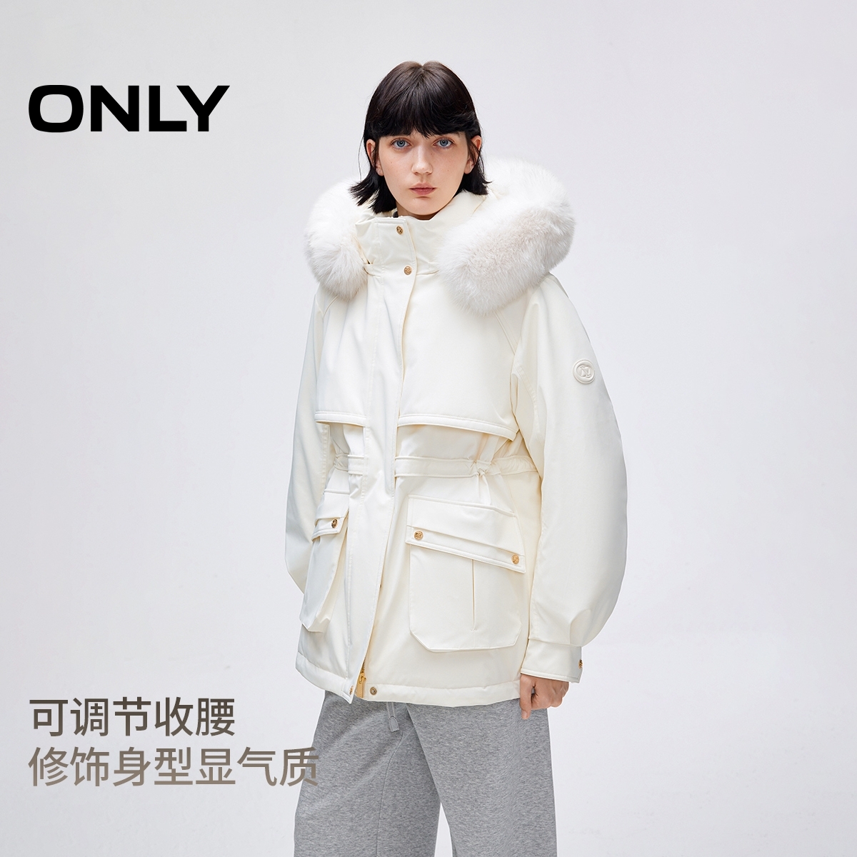 派克羽绒服女 户外90白鹅绒可拆卸毛领连帽工装 ONLY2025冬季 新款