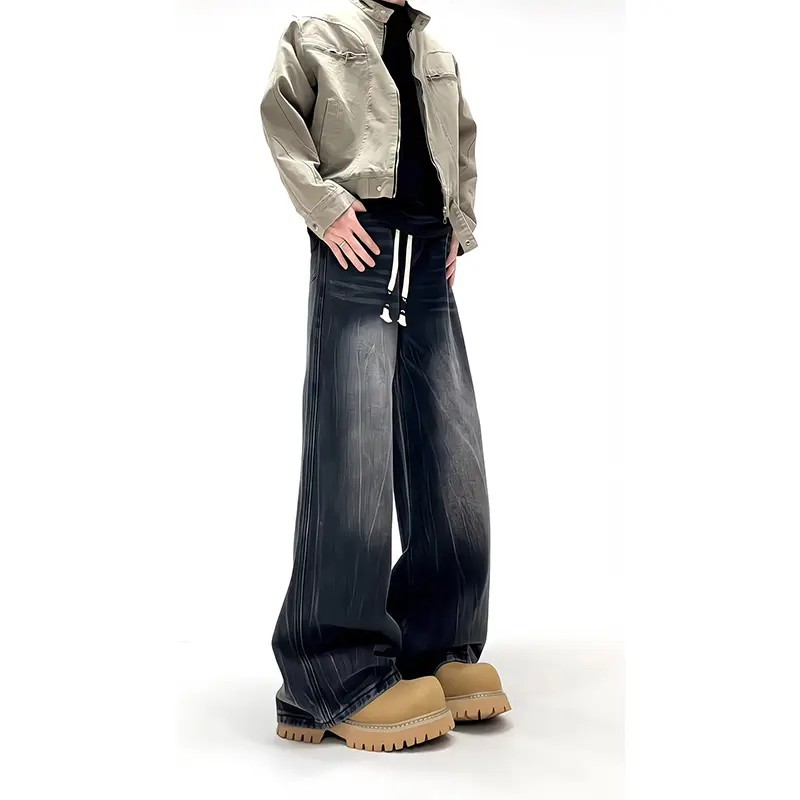 25春秋新款 牛仔裤 太平鸟男装 复古直筒水洗耐磨牛仔裤 魔塑弹