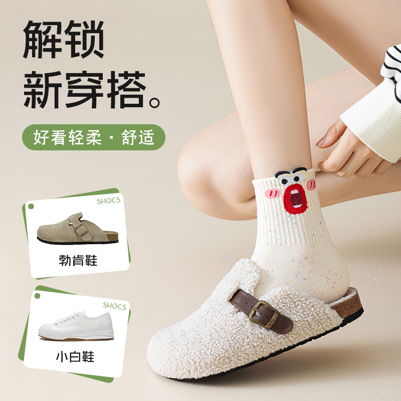 爆款 防臭2025新款 初中生大童女士可爱搞怪 中筒春秋季 纯棉袜子女款