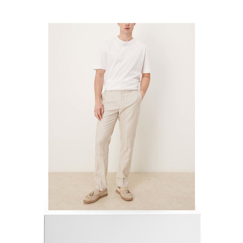 smart 男士 pinstripes 设计修身 1h可退 亚麻混纺裤 香港直邮ASOS