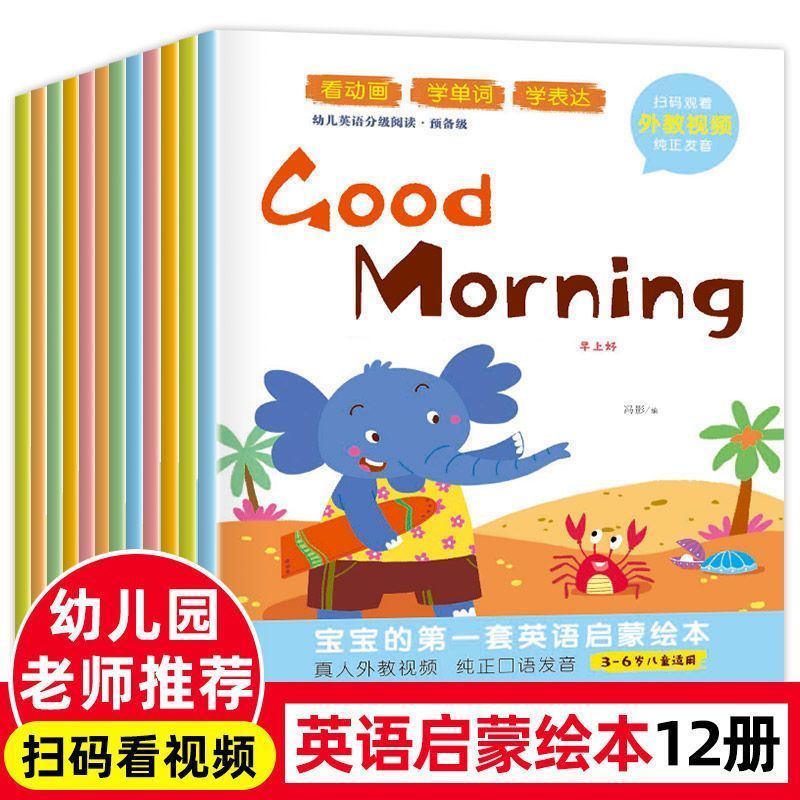 英语儿童英语启蒙绘本全12册 6岁幼儿园英语绘本启蒙读物零基础预备入门宝宝学英文单词日常生活亲子有声 教材分级阅读早教3